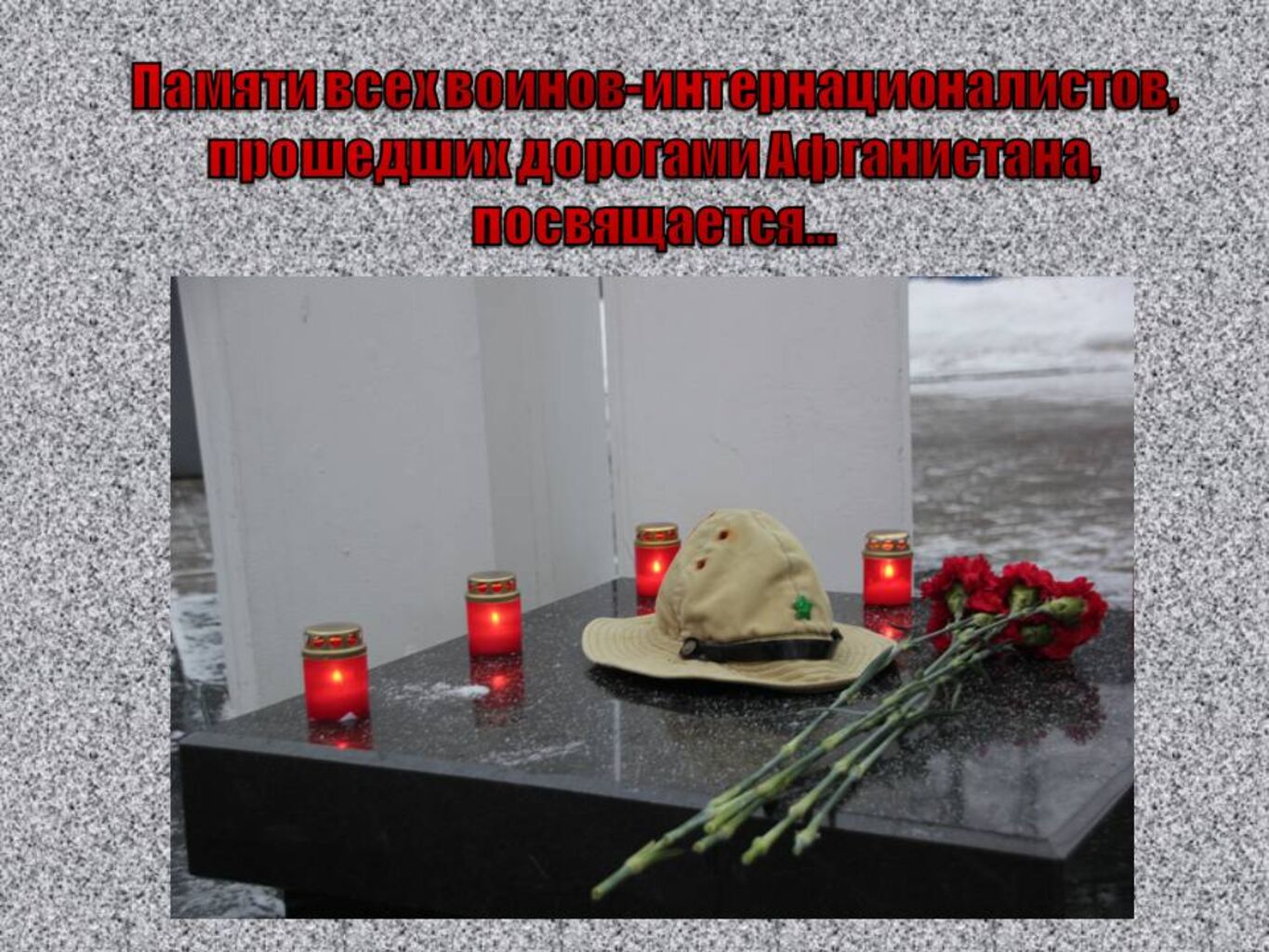 Дата для проведения «Дня памяти воинов - интернационалистов» была выбрана не случайно. Именно в этот день, 15 февраля 1989 года, последняя колонна советских войск покинула территорию Афганистана. В память о героическом подвиге наших военных, и отдавая дань уважения их подвигу, 15 февраля считается в России Днем памяти воинов – интернационалистов