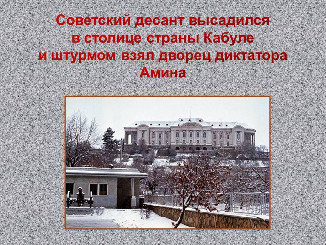 На следующее утро в Кабул стали прибывать советские войска. Так началась десятилетняя афганская война…