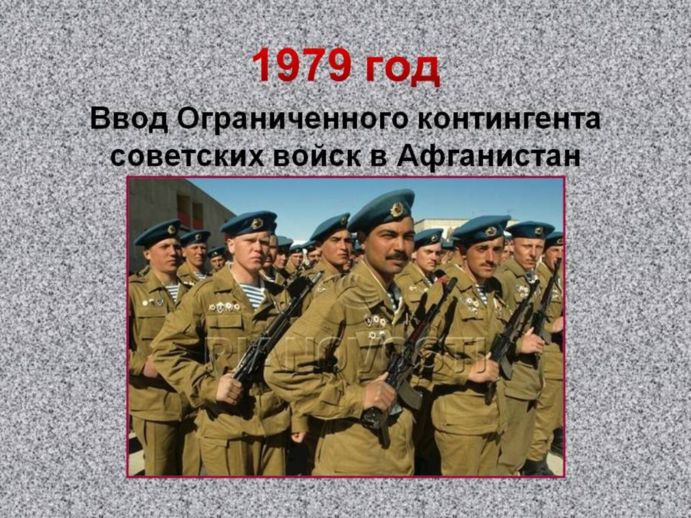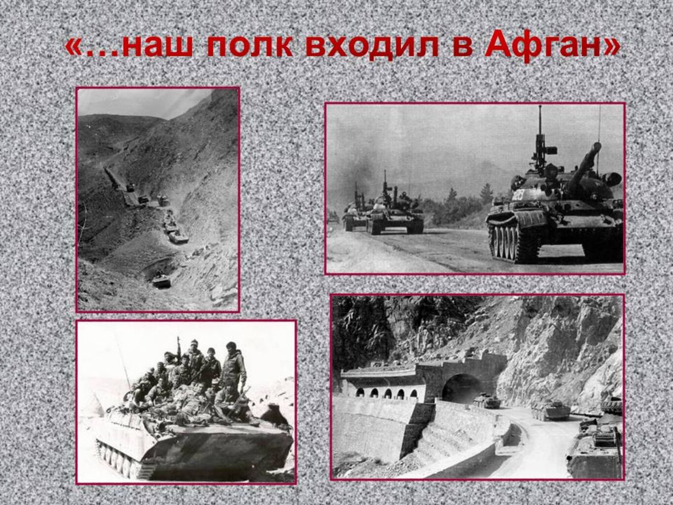 24 декабря 1979 года советским руководством было принято решение о вводе ограниченного контингента советских войск в Афганистан. 25 декабря в 15 часов советские войска вошли в Афганистан. Надолго ли? На этот вопрос не мог ответить никто! Восемнадцатилетние парни не ведали в какую политическую кровавую игру их втянули. Не знали, что некоторые уже никогда не вернутся домой с перевалов чёрных гор Афганистана, сложат свои юные головы на чужбине.