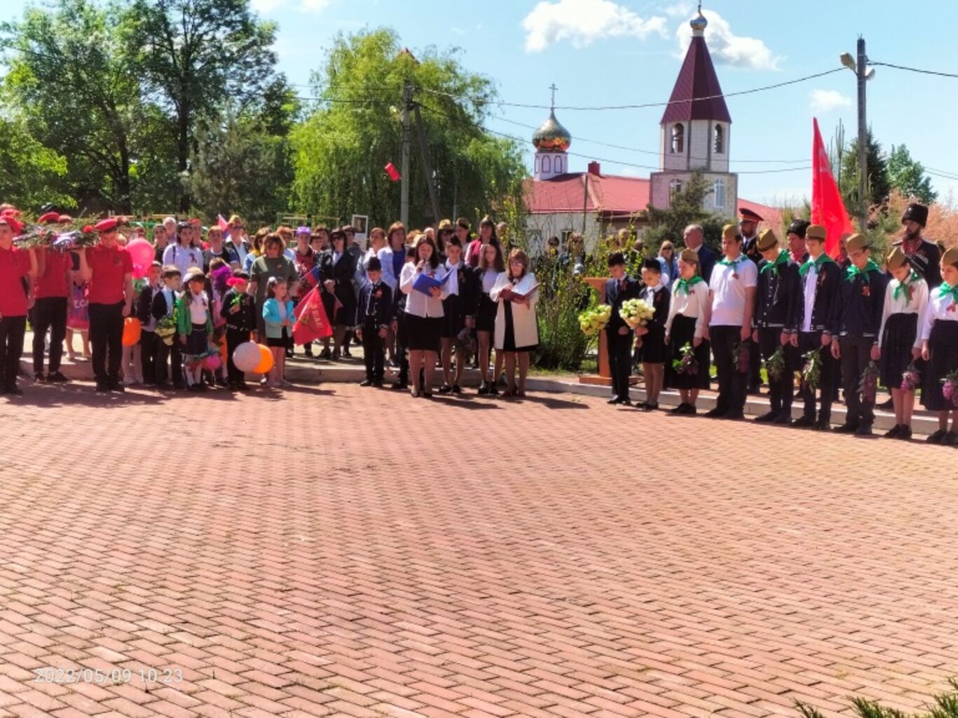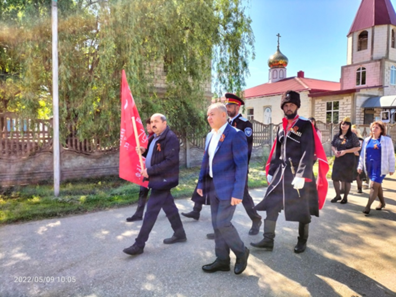 10 часов утра начал свое шествие от здания администрации «Бессмертный полк». Среди участников акции были жители и гости станицы, ученики, представители предприятий поселения. Многие шли в пилотках и георгиевскими ленточками. У некоторых они были прикреплены к футболкам или пиджакам в форме буквы «Z», в знак поддержки спецоперации Вооружённых сил РФ по демилитаризации и денацификации Украины. К памятной колоне присоединились Глава и депутаты Тверского поселения, работники администрации, казачество.